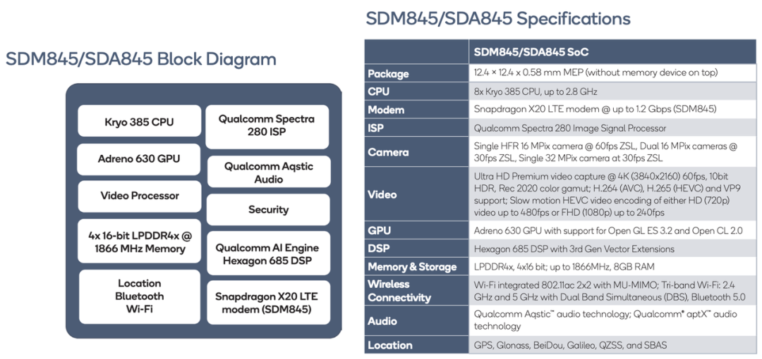 ◎ Qualcomm RB3:搭载 Qualcomm SDA845 ,是专门为机器人设计的平台,在加速计算能力和连接能力方面表现突出,适用于工业机器人等对计算和连接性能要求较高的场景。芯片采用 第二代 10nm LPP 工艺制造,搭载 Kryo 385 八核 CPU(四个高性能核+四个高效能核),在功耗与速度之间取得优异平衡。图形部分由 Adreno 630 GPU 提供支持,具备 6 自由度追踪与 Adreno Foveation 技术,可显著降低能耗并提升 XR 和游戏体验。在影像方面,Spectra 280 ISP 支持 4K 60fps HDR 视频与 10bit 色深,呈现影院级画质。通信方面,X20 LTE 调制解调器与多千兆 Wi-Fi 提供极速连接体验。安全层面,全新 Secure Processing Unit (SPU) 为生物识别和数据加密提供“保险库级”保护。